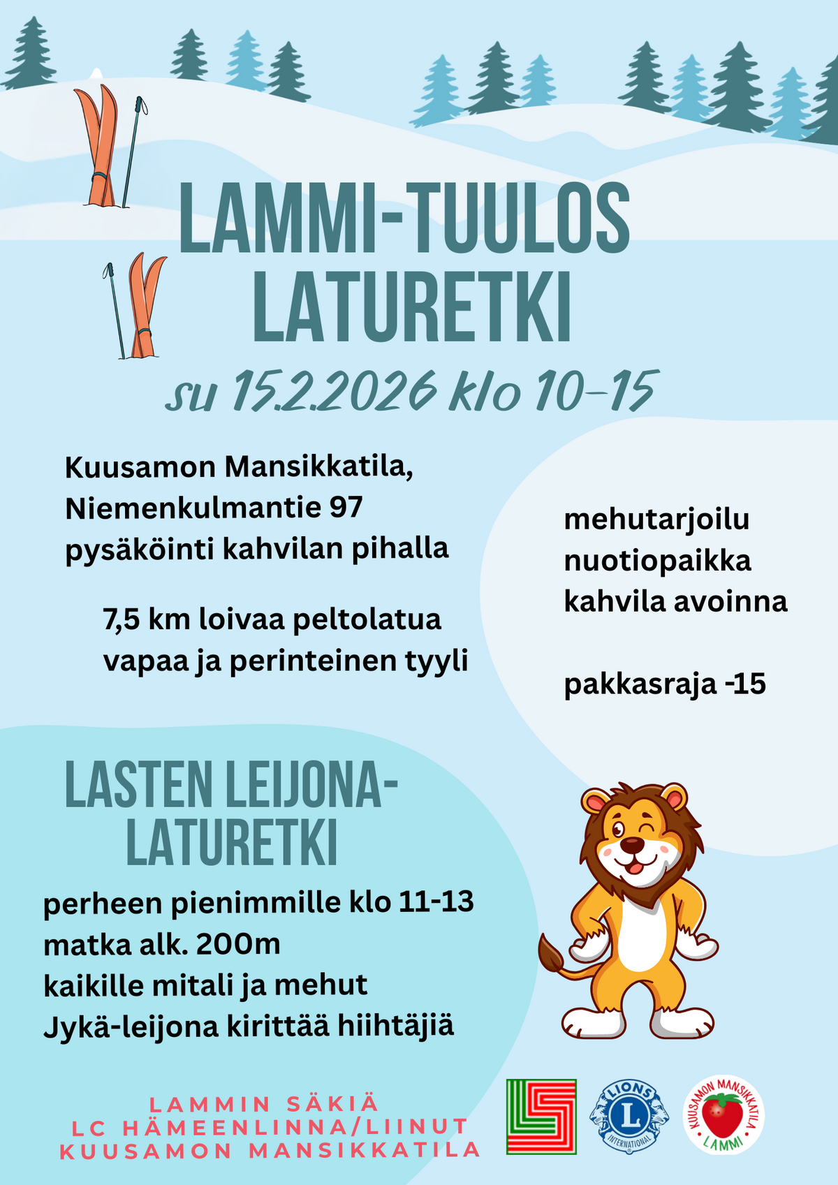 Lasten Leijona-laturetki hiihdetään samana päivänä klo 11-13.
